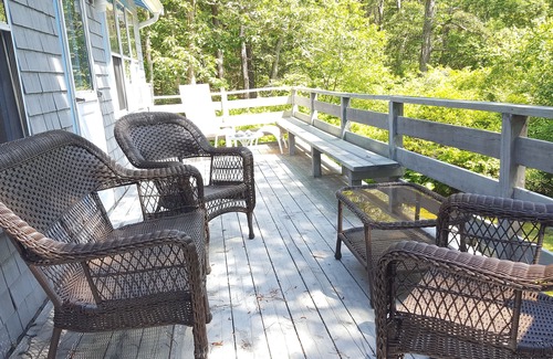 Guests Say: Guests say they like our Foote Rest Cottage because it is private, tranquil, near the ocean, bike path Rail Trail, and General Store -- all within walking distance. Nestled in the National Seashore, it's two decks are private, and sunny. While relaxing on the back deck, one can hear birds chirp and watch wild turkeys fly over the trees, and in July, can eat blueberries from the bushes off the back deck.