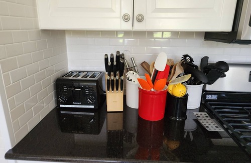 Other amenities include a washer/dryer, iron, in-room fans, two flat-screen TVs and Blue Ray/DVD player, internet access, games and puzzles galore. The house has excellent wifi and can easily accommodate families looking to work and school remotely. Don't hesitate to inquire if you're interested in a long term stay or a range of dates that are outside our minimum requirements.