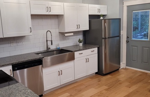 Fully remodeled 4 bedroom, 2.5 bath. Smart keyless entry. High ceilings and luxury finishes throughout. Open floor plan with spacious kitchen, granite counters, stainless steel appliances. primary suite. Marvelous marble bathrooms with heated floors & Bluetooth exhaust fan/speaker. Full laundry room. Third floor includes two bedrooms, one with a queen bed and the other with a queen bed and trundle bed. Sleeps 11 comfortably. Queen air mattress available upon request. (7) security cameras outside of residence, motion sensor floodlights, along with smart video doorbells.