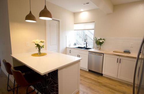 Keyless private entry, 2 bedrooms + flex sleeping space, well equipped kitchen, 2 full bathrooms, wet bar, and cozy fireplace.