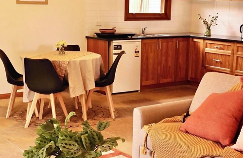 Welcome to our farm! We are a family run business passionate about growing local produce and good quality, nourishing food. The guesthouse is set on 33 acres of a working farm where we currently grow gourmet mushrooms and microgreens and will be expanding our market garden over the next few months! Come and experience and learn how our food is grown and enjoy a paddock to plate experience with locally grown produce available to enjoy. We are located in Oura, just 25 minutes from the centre of Wagga Wagga. Nestled amongst the rolling hills of Oura you will be immersed in the stillness of nature. On a clear night enjoy the beautiful display of stars undisturbed by the city lights. Just 15 minutes down the road is Oura Beach.. a little reserve on the Murrumbidgee river. You may even be lucky enough to spot some echidnas on your stay! The guesthouse is approx 100m from our home. In saying that you still have your privacy as there are gardens between us. Being a working farm you will see us moving about however we will leave you be unless you would like to interact! The guesthouse is 2 levels with the upstairs level containing a queen bed with luxurious sheridan sheets and french linen bedding, reverse cycle aircon, flow on heating from the fire place downstairs and a bathroom ensuite with a shower and toilet with towelling included. There is also a balcony off the upstairs room overlooking the gardens and market garden space. We also provide comfy and warm swags and camp mattresses for up to 2 kids to sleep in. Downstairs is a separate toilet, dining and lounge area with a double fold out sofa bed. The woodfire provides plenty of warmth and we provide you with chopped wood. The kitchenette is a simple little kitchen with a bar fridge, benchtop induction cooker and a slow cooker for your meals as there is no oven. There is also a bbq for your use as well. It is well equipped to dine at home with all essential cookwear and locally sourced condiments. Enjoy your meals inside or on our outdoor dining setting. There is a full house water filtration system giving you beautiful quality water to drink and shower in. We provide a variety of herbal teas and locally ground coffee with a coffee machine. Relax with our selection of books and games. There is a steam sauna available for use as well. Take a walk by the creek and maybe take a picnic basket to enjoy there too. If you would like a personalised tour of the farm please let us know prior to arriving. Only 25 minutes away is the famous Junee Chocolate factory. Just a short 11 minute drive is the Wild Vine Winery and if you would like to indulge in some pampering book yourself in for a massage with Brooke at Figtree retreat just 7 minutes drive away.
