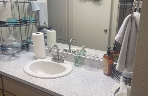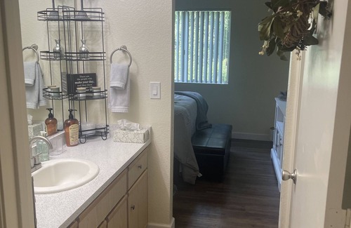 Experience a brilliant stay at this 1-bedroom apartment in Cameron Park. Relax in the cozy bedroom with a queen bed and enjoy the convenience of amenities like heating, AC, and a washer and dryer. The shared bathroom even features a bidet for added luxury. Separate vanity for you to keep your toiletries. Immerse yourself in the charm of Cameron Park in our wonderful community.