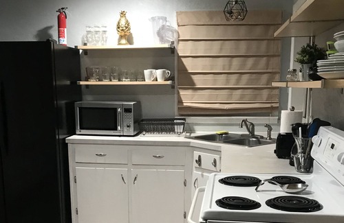 Kitchen is equipped with a refrigerator, stove, microwave, coffee pot and toaster. A washer and dryer are also available to use.
