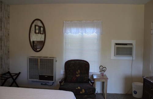 Room 1 features a queen size bed, table with 2 chairs, additional chair for relaxing, bathroom with shower and toiletries, television with Firestick TV, free WiFi, microwave, refrigerator, coffee maker with assorted coffee and teas, iron and ironing board.