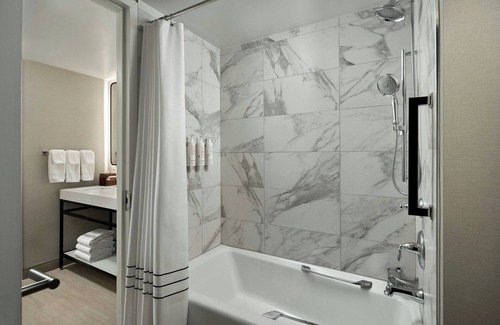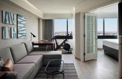 Washington Dulles Marriott Suites offers 249 accommodations with safes and coffee/tea makers. Accommodations offer separate sitting areas and include sofa beds. Beds feature premium bedding. Smart televisions come with pay movies and Netflix. Guests can make use of the in-room refrigerators and microwaves. Bathrooms include shower/tub combinations, complimentary toiletries, and hair dryers.