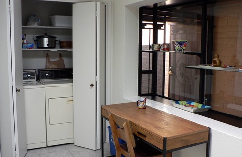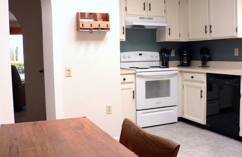 At Green Valley Escapes we lovingly care for our homes while adding a personal touch. This home has a private enclosed courtyard with covered patio with beautiful landscaping for enjoying outdoor living. The inside features 2 bedrooms, 2 bathrooms, and a fully ready kitchen with a computer desk. There is a refrigerator, dishwasher, stove/oven and microwave as well as a full size washer and dryer. There are lots of skylights and windows that make this a bright and cheerful home. The home also has air conditioning and high speed internet access including a wireless (WiFi) connection as well as space in the garage for your car. There is limited basic cable on the living room TV with a TV in the bedrooms as well. TV's include FREE instant movies from Netflix and Sling Live TV streaming.