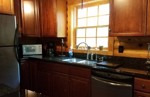 From the granite kitchen with stainless appliances to the flat-screen TVs and direct tv, home can be as close or far away as you want it to be. Our cabin is located on still canoe water, only a few paddles from the big water. Ideally suited to those who love to canoe or stand up paddleboard (both of which are provided--along with two kayaks), you can access the dock by way of a medium-sized motorized boat as well. You can park and bring your boat into our private dock, or park it at the marina, located just around the corner. Alternatively, reach out regarding the use of our luxury tri-toon...