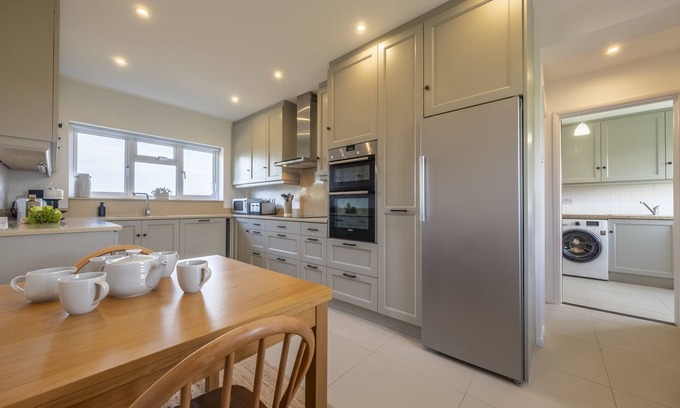 Kitchen - A modern and recently upgraded kitchen has everything you could need for preparing family feasts with a double electric oven, induction hob, dishwasher, full length fridge freezer and a Nespresso coffee machine. There is a door straight to the garden.