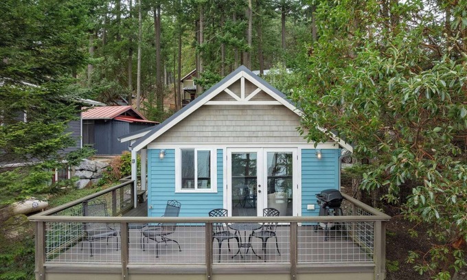 With beautiful views of the Salish Sea, our charming cottage is perfect for a solo retreat or a couple's getaway. Just a short walk to restaurants, shops, and a waterfront park, you can enjoy the convenience of town while waking each morning to sunrises from the deck, or the comfy queen-size bed in this perfectly designed studio.