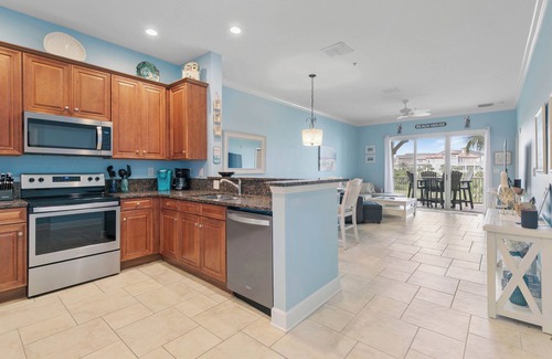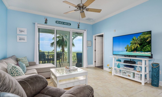 Enter this 3rd floor unit with coastal touches throughout and you will feel like your vacation has immediately begun. The ocean calls you through the open-concept kitchen, dining and living rooms right out to the beautiful balcony. The kitchen invites you to cook up everyone’s favorite meals to enjoy at the dining table or out on the balcony. Brew up your favorite cup of morning coffee in the Keurig or the Drip Coffee maker. The living room is the perfect place to gather to watch a movie.