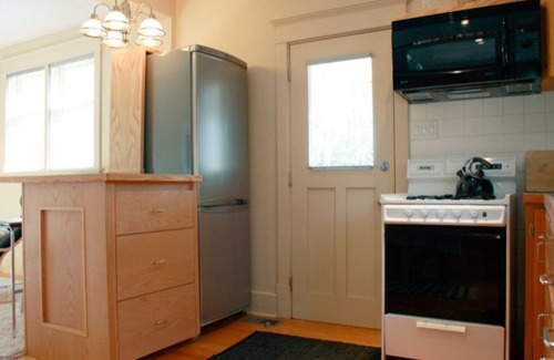 For privacy and comfort guests choose Waterford Executive Suites. The space is quiet (soundproofing from other suite), and private with a private garden and deck. It is in a quiet neighbourhood on the edge of our vibrant downtown (music, restaurants, shopping, theatres) and 3 doors from the walking bridge over Otonabee River and the trails network throughout the city and the Canada Trail. The suite is furnished with quality furniture, has gas fireplace, gas barbecue, a fully equipped kitchen (for a baker, chef, and a separate counter has a bar sink) and good cotton linens are provided for bed and bathroom. The shower doubles as a steam room. With 25 years of experience with a successful Guest House and Spa, now I welcome people with all their individuality and unique needs and likes to one semi-detached private suite. And yes, the bedroom has blackout curtains and the bed and bath rooms are private from the living space. There is a 'throne room' bathroom in the living space, appropriate for guests. Linens for pullout Lazyboy queen for 3rd guest is $100/night. Looking for a place in town for the winter? Special rates apply. Call Marlis