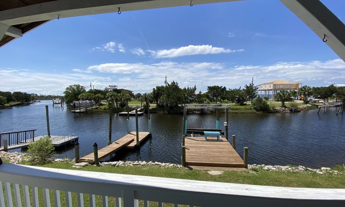 Red snapper season open June 1st!! This two bedroom, one bath beach house is on a canal in Oyster Bay with floating boat dock for mooring your boat and a view of the Gulf of Mexico and sleeps four adults. Offers easy access to fishing by boat, kayak or off dock. The bedrooms are king and full-size beds. There is a porch off the back for sitting. It has a fully equipped kitchen, washer and dryer and leather couches in living area. Linens are provided but you are welcome to bring your own, if you desire. It is adjacent to Shell Point beach if you want to sit on the beach and relax, it is less than five minutes away. Edward Ball Wakulla Springs State Park, home of the world's largest and deepest freshwater spring, the sapphire water of Wakulla Springs boasts manatees, alligators and a host of diverse wildlife that can be viewed from a riverboat or the diving platform is about 22 minutes from our house. Great fishing and scalloping and bird watching. The floating boat dock can handle up to a 26 foot boat without a problem.