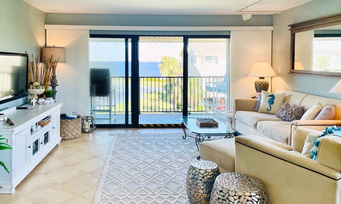 Collect seashells on the white sands of the world's most beautiful beaches, take a refreshing dip in the pool, or explore the sound, which is calm, shallow, and perfect for wading or playing with your kids worry-free. Later, enjoy the cool breeze on the waterfront balcony with its amazing view as you watch the pelicans and dolphins playing directly in front of you. The sunset view off the balcony is truly something you won't forget. Let your guests relax in the living area as you treat them to a delicious meal prepared in the fully equipped kitchen, then wake up each morning to the water outside your window and the bright and cheerful decor of your home-away-from-home.