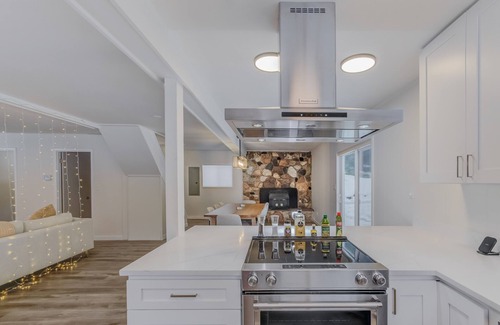 Other amenities include an electric range, two bathrooms, a fully stocked kitchen (with quality frying pans among other things), a washer and a dryer, a 65" OLED TV with Netflix, Amazon Prime, Airplay and Miracast, high speed Internet (courtesy of Starlink), and a Tesla charger.