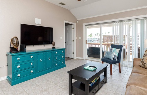 Welcome to Blue Suede! A charming two bedroom condo with two bathrooms that offers an open concept layout. The living area is cozy and offers seating for the whole family with a queen size sleeper sofa. The kitchen is fully equipped with everything you need to cook on vacation. Both bedrooms are spacious with comfy beds! You'll love both of the large, private decks off the living area that over looks the canal and has cozy furniture to enjoy the Texas breeze. Great space to relax and enjoy the Texas breeze!