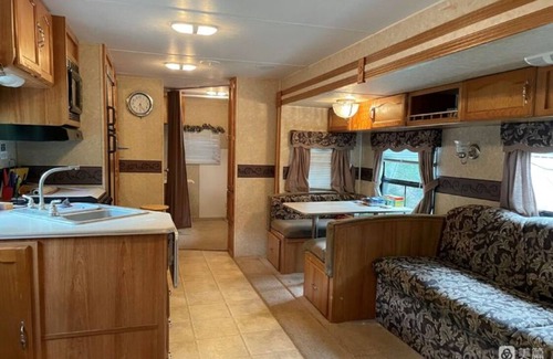 RV trailer Jaguar- 31 feet RV trailer, a queen size plus bunk beds, sofa bed and kitchen which offers microwave, and refrigerator, a shower room is available, enough for 3 - 4 guests.