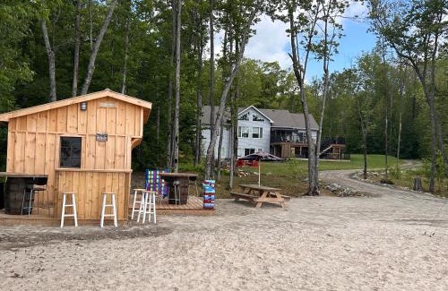 31 miles from Muskoka Heritage Place - Museum, Village, Train in Sprucedale, Waterfront cottage with hot tub & private beach in Muskokas offers accommodations with access to a fitness room. This beachfront property offers access to a patio, a pool table, free private parking, and free Wifi. The vacation home has an outdoor fireplace and a hot tub. Featuring a terrace and lake views, the spacious vacation home includes 6 bedrooms, 3 living rooms, flat-screen TV, an equipped kitchen, and 3 bathrooms with a hot tub and a bath. Featuring air conditioning, this unit has a dressing room and a fireplace. The vacation home offers bed linen, towels, and laundry service. There is an on-site bar. For guests with children, the vacation home features an indoor play area, outdoor play equipment, and a baby safety gate. Skiing and fishing can be enjoyed nearby, while a ski equipment rental service, a private beach area and water sports facilities, are also available on-site. North Bay/Jack Garland Airport is 68 miles from the property.