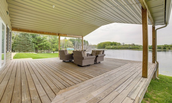 Escape to Northern Michigan with your family or friends and book this 3-bedroom, 3-bath Evart vacation rental! This spacious cottage features 4 Smart TVs, a fully equipped kitchen, and direct lake access. Sip your morning coffee on the deck and relish the peaceful lake views, then head down to the water for fishing or kayaking! Seeking an adventure? Take advantage of the off-road and ATV trails located on-site. When night falls, gather around the fire pit for s’mores and stargazing.