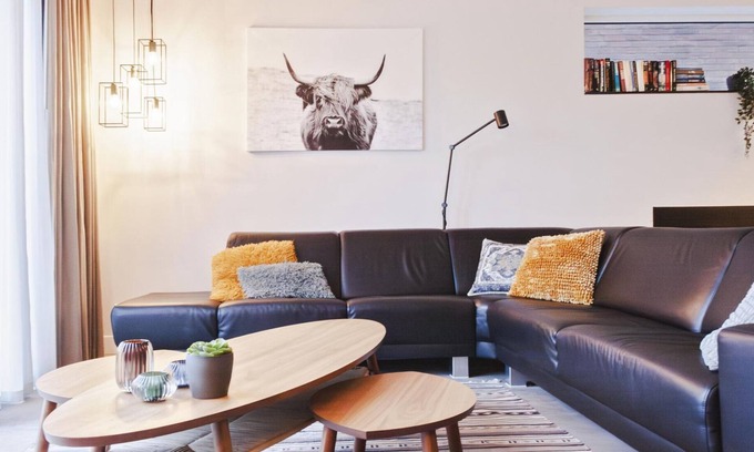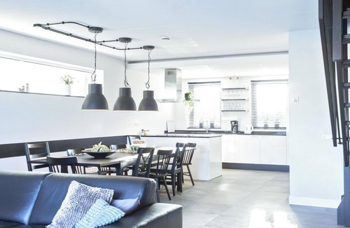 This spacious waterfront holiday home offers the perfect setting for families and groups looking for a relaxing retreat. With five generously sized bedrooms, it comfortably accommodates guests, providing cozy beds and elegant furnishings. Large windows fill the space with natural light, offering beautiful views of the water. The property is designed to be both stylish and inviting, featuring a private terrace where guests can unwind. Additionally, this home is pet-friendly, allowing visitors to bring along their furry companions for an unforgettable stay. Situated in a prime location, the home is surrounded by charming cafes, local markets, and scenic walking trails. Guests can explore the vibrant town center, where boutique shops and cultural attractions await. Outdoor enthusiasts can take advantage of cycling routes, nature reserves, and water-based activities such as boat trips and fishing. Whether you prefer a peaceful escape or an adventure-filled holiday, this location offers the best of both worlds. The home is fully equipped for a comfortable stay, featuring a modern kitchen with high-end appliances, including an oven, dishwasher, and coffee machine. Multiple bathrooms with walk-in showers and fresh linens provide added convenience for larger groups. Guests can also enjoy free Wi-Fi, a cozy fireplace, and private parking, making this waterfront retreat an exceptional choice for a luxurious and relaxing getaway. A security deposit of EUR 450,00 will be required closer to your check-in date. You will receive a separate communication with the payment link. The security deposit ensures a smooth stay and covers any additional services such as cleaning, service charges, consumption, damages or any additional charges incurred during stay. Any balance from the deposit will be refunded within 21 days after checkout.