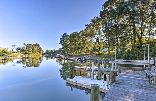 Clear your mind with a stay at this peaceful Weems home, tucked away in a private cove just minutes from the towns of Irvington, Kilmarnock, and White Stone. Aside from the beautiful views, this vacation rental hosts 3 bedrooms, 2.5 baths, a covered deck, and private dock. If you're a lover of wildlife, look for ospreys, heron, and eagles from the backyard, or from the comfort of your kayak. When you're ready to venture out, visit Vine Wine Bar for a taste of the local cuisine.