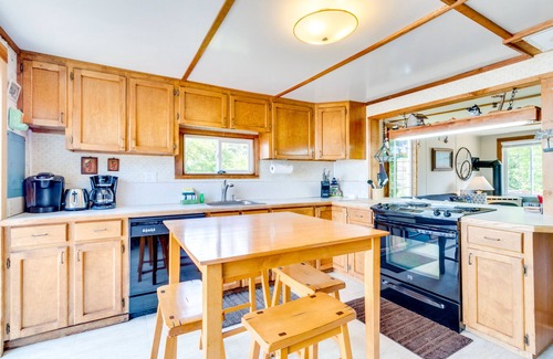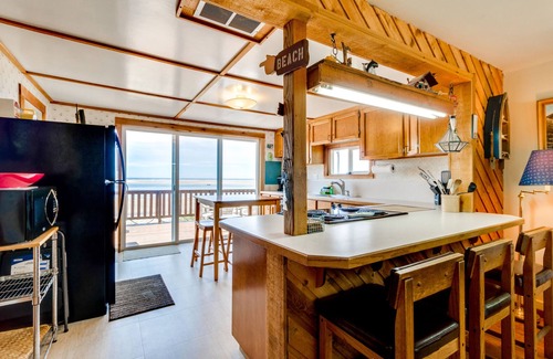 When your group gets hungry, serve up some salmon dip and crackers or a hearty homemade meal made in the well-equipped kitchen. You'll have all the cooking necessities for quick and easy meal prep, along with ample countertops and breakfast bar seating. But if the breakfast bar seating isn't enough, there's even a four-seat wooden table for meals together with your whole group. If the weather calls for it, head outside for an al fresco experience on the home's expansive deck, where you can listen to waves crashing in the near distance while savoring fresh Dungeness crab cakes paired with a fine glass of Oregon pinot.