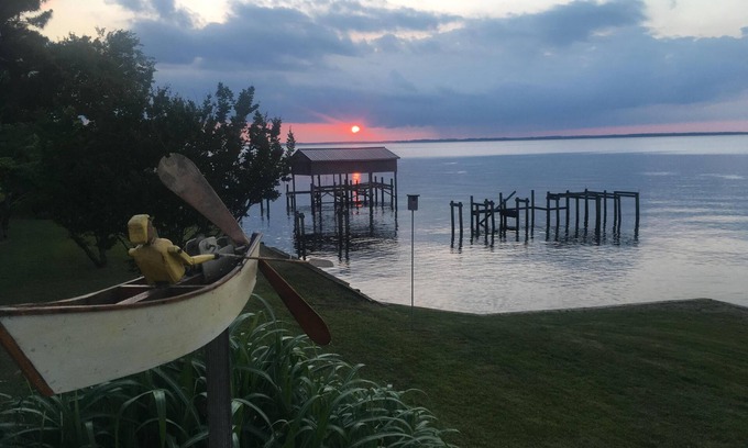 Our piece of heaven---a 3-bedroom cottage on the Albemarle Sound near the mouth of the Roanoke River---can be your vacation spot and fishing mecca. Enjoy your time at The Crow's Nest by relaxing in the hammock on the corner porch, rocking on the front porch watching the water activities, or being part of the water activities.