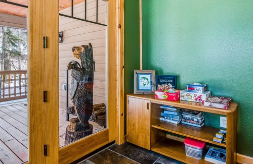 The woodsy atmosphere definitely influenced the interior of this home. Enjoy lounging on the comfy leather sofas while feeling the warmth of the fireplace - it’s the perfect spot to warm up after a day of snowy adventures. The full kitchen is well-equipped with its ample space and stainless steel appliances to tackle any cooking task.