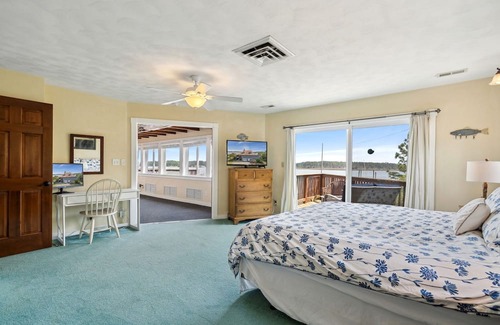 This home has a Spacious Layout. Enjoy the large floor plan that creates space for every member of your group while providing 180 degree water views. The fully equipped kitchen has everything you need for cooking and entertaining. With 5 bedrooms to choose from everyone will find their perfect space. The master bedroom features a king-size bed and opens onto a private deck with stunning water views. The 2nd main floor bedroom is a queen. Twin Beds perfect for older children is located on the 3rd floor. The lower level has 2 bedrooms with a full bathroom to share.
