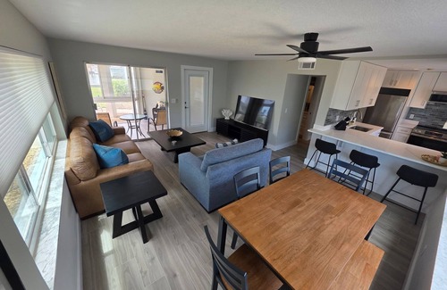 Relax in your private waterfront oasis on beautiful Island Estates — just a 10-minute stroll from world-famous Clearwater Beach. This spacious, newly renovated 2-bedroom, 1.5-bath condo features first floor water views, a fully stocked kitchen, fast Wi-Fi, smart TVs, and a community dock on the water. Perfect for couples, families, or snowbirds looking to unwind in comfort and style. LONGER RENTALS PREFERRED monthly discount available.