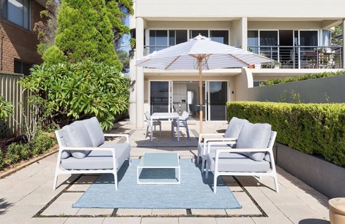 "The Three Bays" is a King Bed opulent one bedroom waterfront garden apartment with designer outdoor entertaining area. Stylishly decorated in hues reflecting its estuarine location, fully self contained with own entrance, featuring king size bedroom plus double sofa bed, suitable to sleep up to four. A short walk to cafes, restaurants and shopping centres.