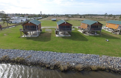 Hyde County Lodges are located on the Pamlico Sound in Engelhard, N.C. Engelhard is a quaint fishing and farming village. Our lodges are 2 bedroom lodges with full kitchen, washer/dryer, dishwasher, and microwave. One bedroom has a queen and a twin, the other bedroom has 2 twins. The lodges are fully furnished with all bed linens and towels. The lodges have a closed in porch with beautiful views of the Pamlico Sound. Sit on the porch and watch the fishing boats coming in daily with their catch. The property has a fishing pier, boat ramp, boat basin and boat dock. The lodges offer free wifi, satellite tv and Roku streaming network. Engelhard is known for its outdoor lifestyle. While there are no beaches here we are just a 55 minute drive from Manteo and Nags Head area on the Outer Banks. Lake Mattamuskeet is a short drive from the lodges. Ocracoke Island Ferry is a 25 minute drive. You can enjoy kayaking, canoeing, fishing, boating, hunting, hiking, and bird watching on the sound or on the lake. We would love to have you come stay and visit our beautiful and scenic area. **** Please note pets are allowed only on screen in porch and not allowed in living area of lodge.****** Check in after 4pm Check out before 10am