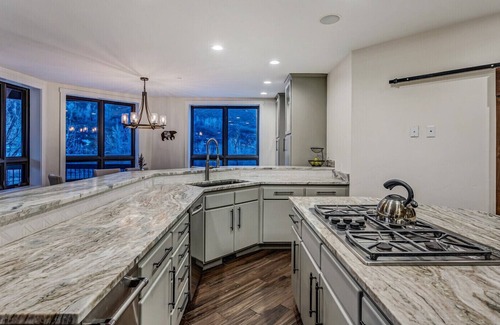 Set amongst soaring mountain views, this riverside chalet celebrates its rugged location in Snowmass with massive windows, a wrap-around balcony, and a path down to the Roaring Fork River. This spacious chalet is perfect for large and has plenty of room for everyone to gather and private areas to break away. The kids will love the home theatre, complete with a popcorn machine.