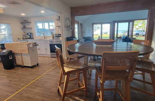 An inviting open-concept living area with large windows that let in natural light and stunning water views. Queen sized pull out couch available in the living room.