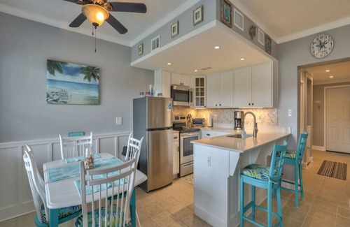 Beautifully decorated Two bedroom over 900 sq. ft. One King size bed and one Bunk room with full size beds. Brand new beautifully updated kitchen with every day life amenities. All new bath including new tiled shower and upgraded vanity. The living room features leather sofa and love seat.