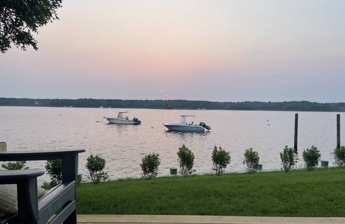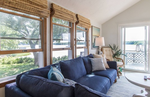 Open-concept our Cape Cod home is an ideal spot for family time. Relax while watching boats pass as the sun sets or watch a movie on the flat-screen TV.