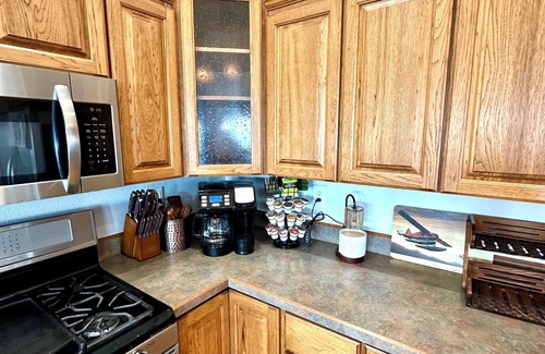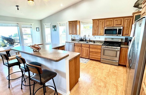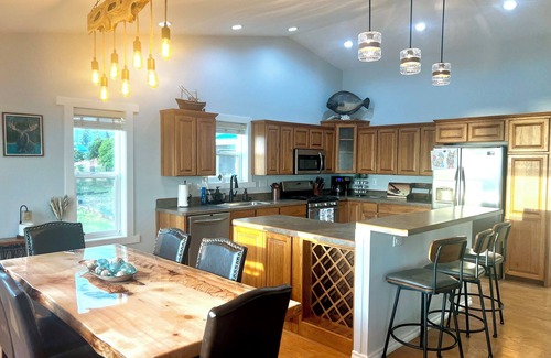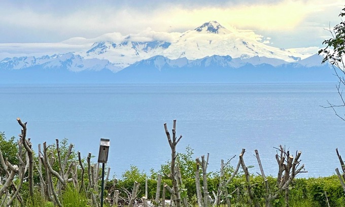 Waterfront retreat with stunning views of Iliamna Volcano and artisan touches. This spacious bay-side retreat offers an open-concept layout with a fully stocked kitchen, dining area, and cozy living room—perfect for unwinding after a day of exploring Alaska. With 2 comfortable bedrooms, 1 full bath, and a beautiful deck, it’s equipped for a convenient and relaxing stay. Nestled on nearly 2 acres, the home boasts sweeping views of Iliamna Volcano and Lake Clark National Park. A perfect getaway for nature lovers, photographers, and Anchor Point adventurers.