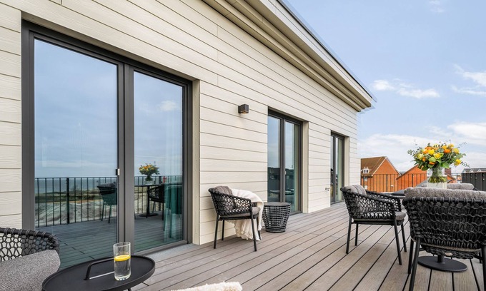 The rooftop terrace is another highlight of this dream apartment. Here, you can relax under the open sky, breathe in the fresh North Sea air, and enjoy the view. Garden furniture offers the perfect place to recline and soak up the sun.