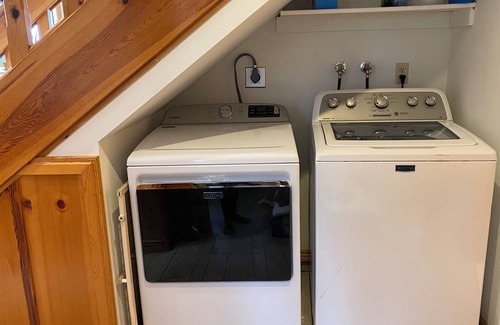 The two bedrooms feature queen sized beds and the high-ceilinged loft has a king sized bed. The well-stocked kitchen contains a dishwasher, fridge/freezer, coffee maker, microwave, electric stove/oven, toaster, kettle, and all the cookware you’ll need to create that quintessential Pacific Northwest meal.