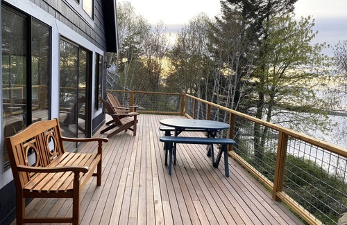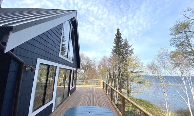 Our relaxing getaway cabin features two bedrooms and a large loft, full kitchen and bath, boho-vintage touches, wood stove, electric heat, dining table for six, flat screen TV, and plenty of books and games. Outside, the large deck with BBQ is the perfect place to unwind and drink in one of our spectacular North Shore sunsets.