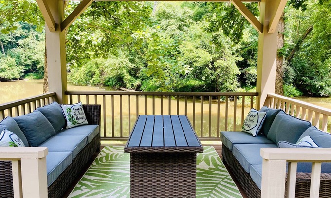 Welcome to Water’s Edge Cabin and Retreat! Water’s Edge Cabin is situated on 7 acres in Randleman, NC. This 1 bedroom/ 1 bathroom cabin sleeps 4 comfortably with a queen size master and queen size sofa sleeper. The cabin offers a full kitchen, washer and dryer, screened in porch overlooking the peaceful river, patio, waterfall, gazebo, fire pit, charcoal grill and smoker. All linens, towels, wash clothes, sheets etc. are provided as well as toilet paper and paper towels. Enjoy fishing, kayaking, roasting marshmallows by the fire pit, or relaxing in the hammock or gazebo overlooking the river.