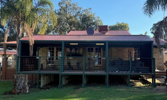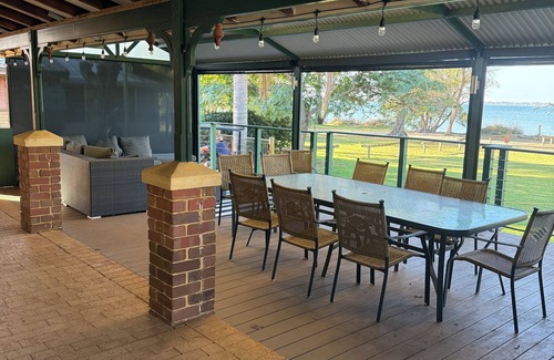 Relax and unwind while you look out over the estuary. Large wrap around balcony where you can watch the kids play in the park,tennis or basketball court. Seasonal pool to enjoy, boat ramp so bring your jet ski or boat and don’t forgot your crabbing and fishing gear. 4 bedroom house, sleeps 10, plenty of room for everyone to enjoy, laundry, kitchen and all the amenities required for a relaxing stay. Pets welcome but must remain on lead in the park