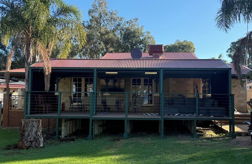 large self-contained 4-bedroom house, all freshly decorated. You will have clear view over the estuary from the wrap around balcony. you can sit out and watch the dolphins or take to the water in your boat or jet ski. The house has its own boat ramp and lots of space to park your car and boat. The house is situated with Waters edge caravan park, which is privately owned. you can use the park amenities, like the children's playground, basketball court and pool (seasonal) during the holiday months like Xmas and easter, there may be a live band or activities for the kids. everyone's welcome to join in or just relax at the peace waterside retreat