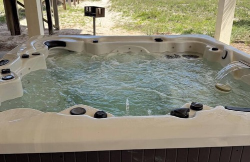Inside, Jack Henry's Hideaway boasts four separate living areas, two wet bars, and two dining spaces, providing plenty of room for everyone to gather or spread out. A seven-person hot tub invites you to unwind after a day at the beach, while a private boardwalk leads you directly to the sugar-white sands and emerald waters of the Gulf.