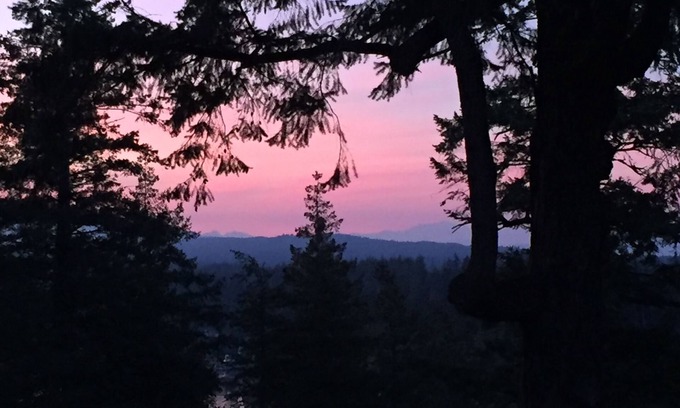Ask about winter weekly/monthly discounts! At Raven's Bluff, you will enjoy most beautiful and unique views from the the cabin and deck featuring majestic old growth trees, mossy covered bluffs with some trails , ocean and mountain range views , spectacular sunsets and lots of amazing wildlife. , including the local resident ravens of course. The cabin is 550 square ft on main level which features large windows looking out high above the Whiskey Point "peninsula" . It has a very unique "treehouse" feel to it. The large separate bedroom features a queen size bed. There is a loft area above the kitchen/livingroom for lounging or as an alternative sleeping area for 2nd guest that has a single bed. The 3 piece bathroom does not have a tub, sorry! Theres a storage room below that has the cabin's own separate washer/dryer for guest use. The cabin is under 5 min to the Cove ferry, or the shops, market and restaurants. Wifi is included.