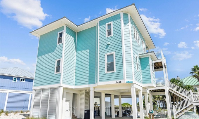 Rock Lobster is a vacation paradise that is ready to make many family memories. Elegantly appointed, this beautiful 4-bedroom 3 full and 2 half bath beachside home sits among the East Gulf Beach private lots with fantastic beach views! The first floor boasts a comfortable family room with half bath, smart tv with DVD player, and a twin sleeper/sofa. The room opens to a spacious covered deck, expanding the width of the home with ample outdoor furnishings. Follow the steps down to the beach on your private boardwalk. Also on this level is 1 King Bedroom Suite, full bath with soaking tub, 1 Queen Bedroom and one twin over queen bunk bedroom sharing a full jack-and-jill bath between. The washer and dryer unit is also on this floor. The top floor has a well-appointed kitchen with lots of cabinets, new appliances, 14-foot ceilings and a breakfast bar with 4 bar stools. The dining area has a large table with seating for 8. The marvelous views continue from the comfortable middle seating area with a large tv, an additional twin sleeper/sofa. Off the common living area on this level there is an additional half bath and a King Suite with a full bath. The dining, sitting and living rooms are all warmed with beautiful hard wood floors and perfectly appointed to take in the stunning views while visiting with family and friends. The covered, outdoor deck off this level is the perfect place to lounge for a drink or enjoy some outdoor dining. A superb spot for taking in the stunning sunrises, incredible starry nights or watching the dolphins play in the beautiful blue water!