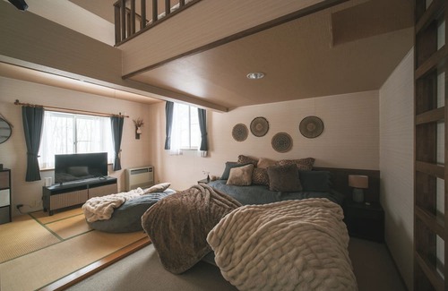 Welcome to Shofusha Lodge, your new Happy Place! Whether you're chasing the adrenaline of winter sports or the tranquility of lush forests and pristine lakes in other seasons, Shofusha is your ideal escape. Our lodge invites you to enjoy six cozy rooms, each thoughtfully designed with a mix of Western and Japanese influences, ensuring a peaceful getaway. Whether you prefer the intimacy of a double room or the roominess of a family suite, each space comes with its own bathroom for extra privacy and convenience. The rustic yet modern style sets a calm vibe, creating a comfortable and peaceful haven for your stay. With a complimentary 8-seater car and just a 2-minute drive to some of the best lift-accessed powder in Japan, the adventure is at your doorstep. Unwind, embrace nature, and soak in the positive vibes. So, kick back, relax, and let the joy of every season unfold at Shofusha Lodge!