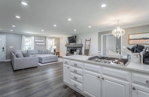 For cozy evenings, gather around the lakeside firepit to roast s'mores or stay closer to the house and grill hot dogs or steaks with a second firepit. Inside, the spacious kitchen with a double oven is ideal for cooking family meals, while the living room’s gas fireplace sets the scene for movie nights. With minimal stairs and indoor entertainment like games and movies, 🌅SUNSET ESCAPE🌅 offers a perfect getaway for guests of all ages.