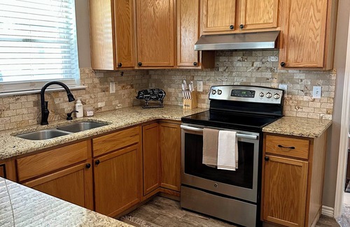 Unwind at the Howdy House, a cozy 3-bedroom getaway that blends sweet Southern charm with the proud traditions of Aggieland. With 1 king bed and 2 queen beds, there's plenty of room for a peaceful night's sleep after a day in College Station.