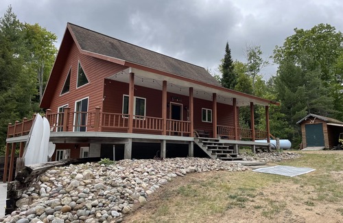 This outdoorsperson's dream is located in the Pictured Rocks National Forest, tucked behind the Kingston Plains, on the breathtaking Mervin Lake. It features a wrap around deck overlooking the lake, master bedroom with Queen size bed, a loft with 2 Full size beds, a queen and 1 twin bed. Finished walk out basement with bedroom (queen bed) and bathroom with large shower, upper and lower level living rooms with smart TVs and internet access, gas fireplace in main living area(furnace too), and a fully stocked kitchen. The cabin is nestled on 7 acres with ample parking for boat/atv trailers about 1.5 miles from the park and ride on H-58 right on the crazy 8's.