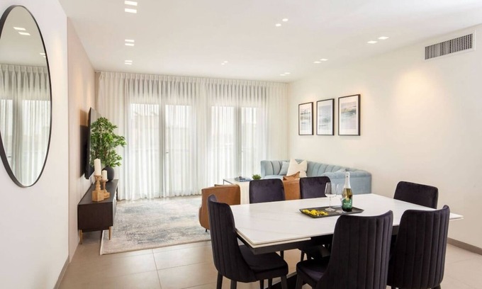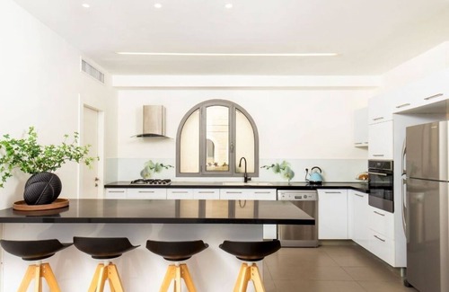 Welcome to The Onyx — a stunning, newly designed four-bedroom luxury apartment in central Jerusalem. • Step into spacious living areas and a full kitchen designed for families and groups up to ten guests. • Located on the 6th floor with Shabbat-friendly elevators, just a short walk from Ben Yehuda Street, Makhaneh Yehudah Market, and the Old City. • You will love the onsite gym, free parking, self check-in, and attentive 24/7 building staff.